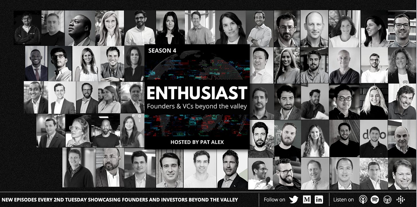 This newsletter will provide you with bi-weekly write-ups based on the podcast the “Enthusiast - Founders and VCs beyond the Valley”, hosted by Pat Alex where he interviews leading founders, operators and investors on their journey and their lessons learned along the way.